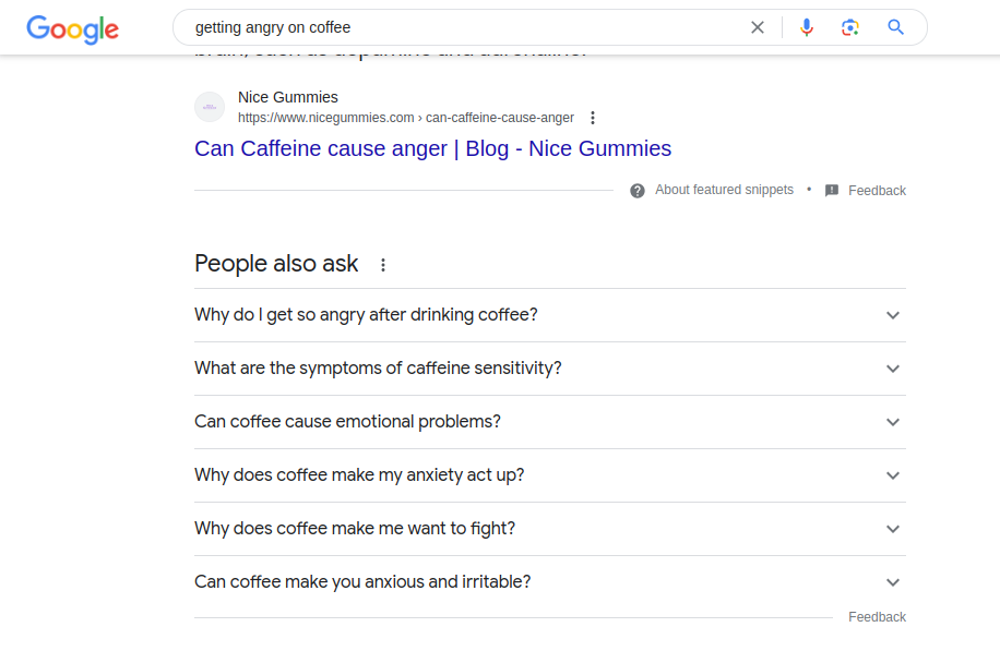 Typing “getting angry on coffee” in Google resulted in some interesting suggestions based on other people’s searches.