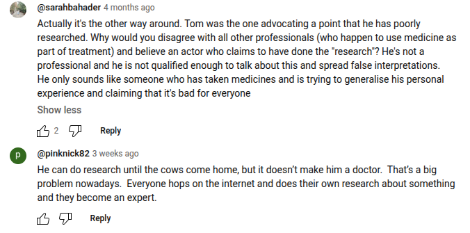 Fortunately, there are plenty of psychiatrists and psychologists who call out their own professions, and their quotes can be presented as evidence from the experts themselves. Unfortunately for Tom Cruise, he did not bring up any of these people, possibly because he didn’t realize people would trust the experts so unquestionably or possibly because he was put on the spot when the topic of psychiatry was brought up. I don’t know. However, I will go ahead and provide a few quotes from some of these professionals: